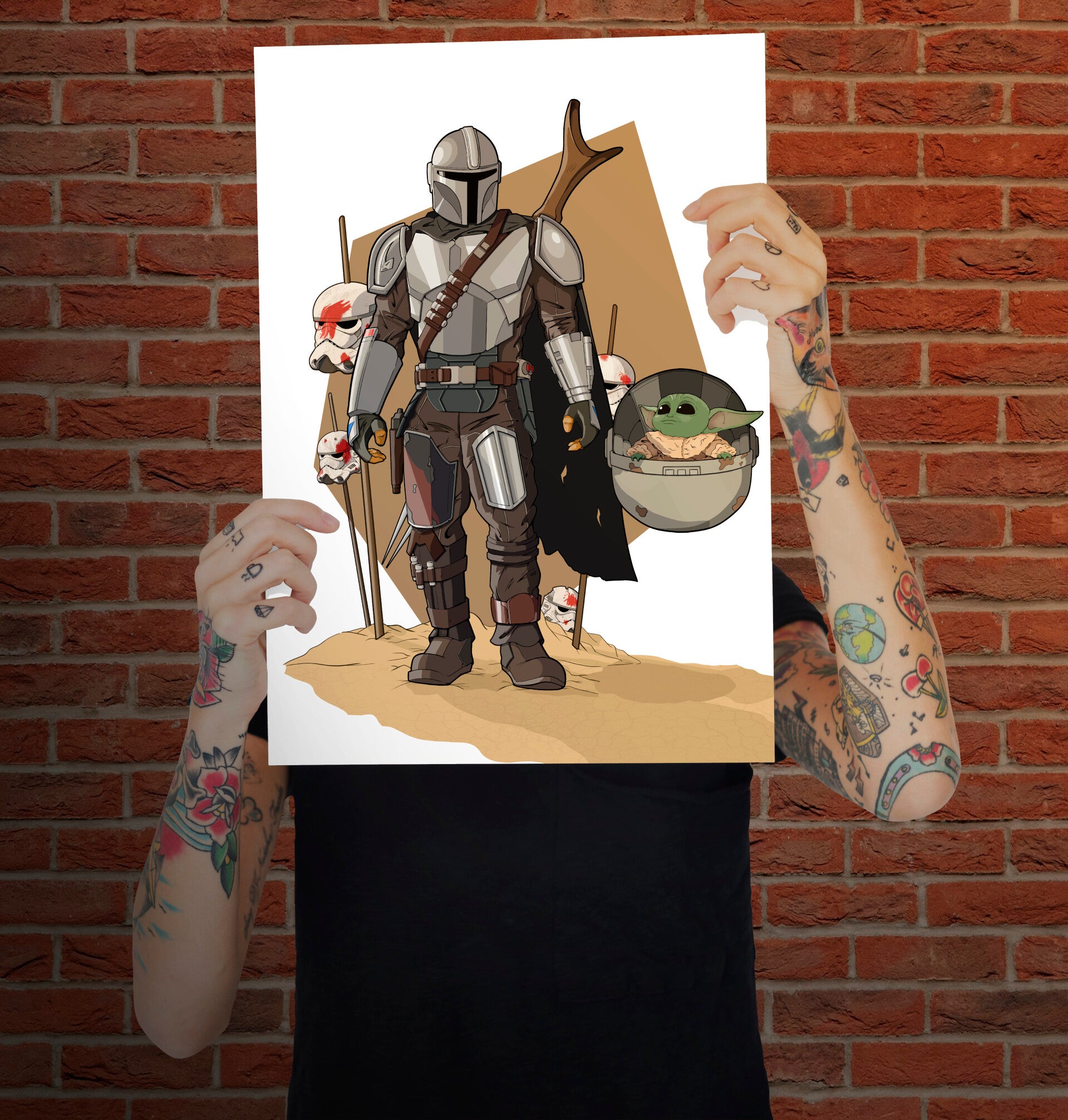 Fan art of Star Wars character Mandalorian and Grogu.